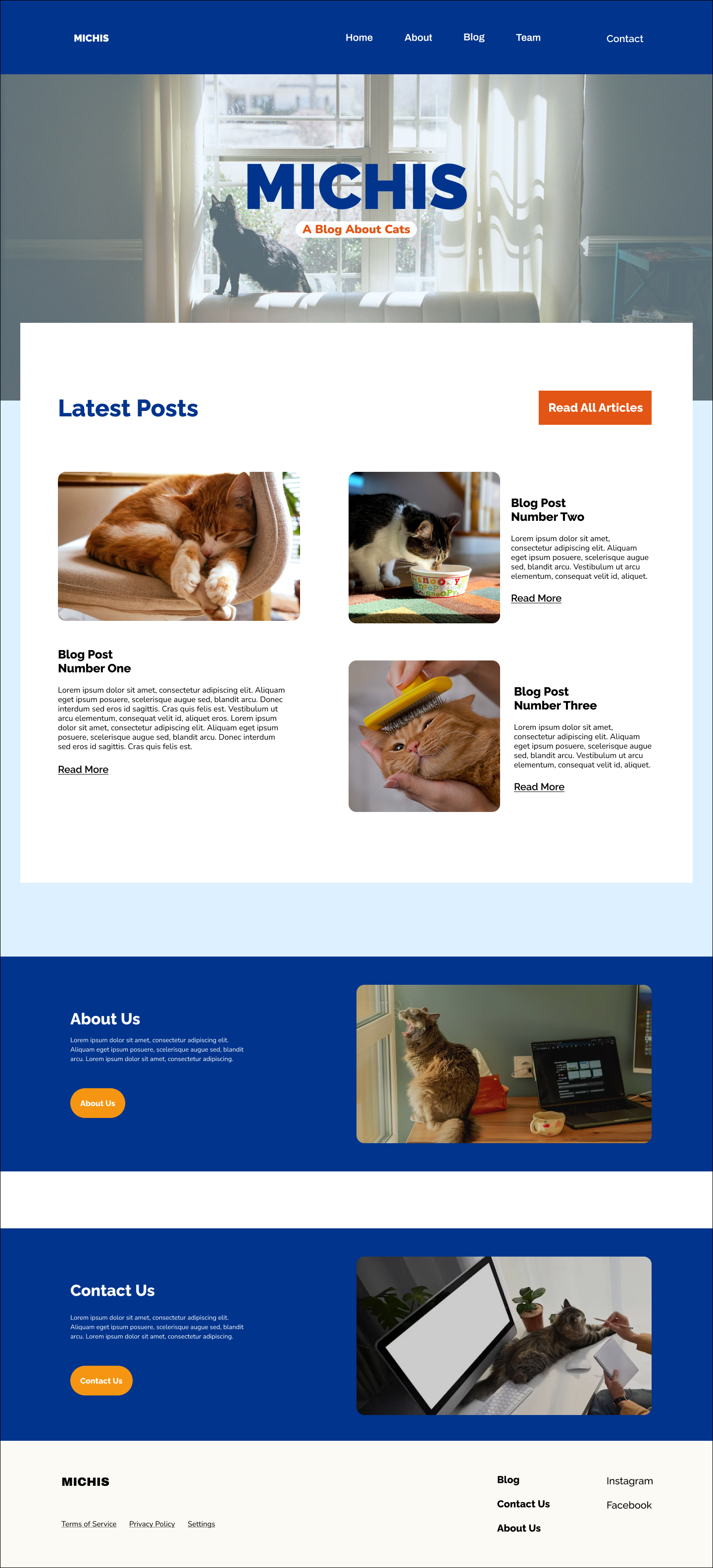 This project focuses on designing and prototyping an interactive, user-centered website with clear navigation and engaging elements. The concept is a cat blog titled Michis, inspired by the affectionate term used in Mexican culture. The website provides information on how to care for cats, including tips, essential knowledge, and guidance for both new and experienced pet owners, all within a playful and approachable design that reflects the personality of cats.